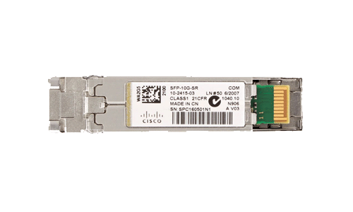 ماژول سیسکو مدل SFP-10G-SR برای انتقال دیتا از طریق فیبر نوری مالتی مود با قطر بین 50 و 62.5 میکرومتر با پهنای باند 01 گیگا بیت بر ثانیه است که در تمامی دستگاه های سیسکو با اسلات SFP + قابل استفاده است. این ماژول می تواند در دامنه ی 1310 نانومتری فعالیت کند که در نهایت منجر به ارسال سیگنال تا 500 متر در حالت مالتی مود شود.